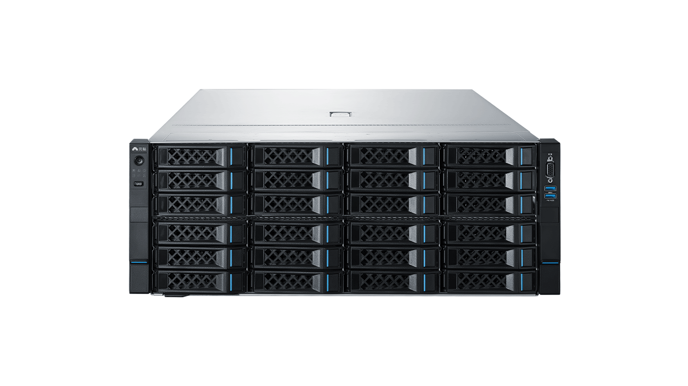 存储 | • 前置 24个3.5英寸 SATA/SAS支持热插拔 • 后置 16个3.5英寸 SATA/SAS支持热插拔 4个2.5英寸 SATA/SAS/NVMe SSD支持热插拔 2个SATA/PCIE M.2或2个E1.S SSD存储模块 • 内置 6个3.5英寸SATA/SAS 硬盘 最大支持2个TF卡 • 最大支持16个U.2 NVMe SSD |